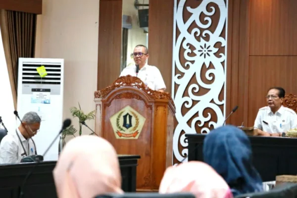 Sekda Batola H Zulkipli Yadi Noor pimpin rapat koordinasi menentukan lokus desa menjadi sasaran peningkatan kualitas keluarga Tahun 2025, di Aula Bahalap Marabahan, Rabu (12/02/2025).(HO-Diskominfo Batola)